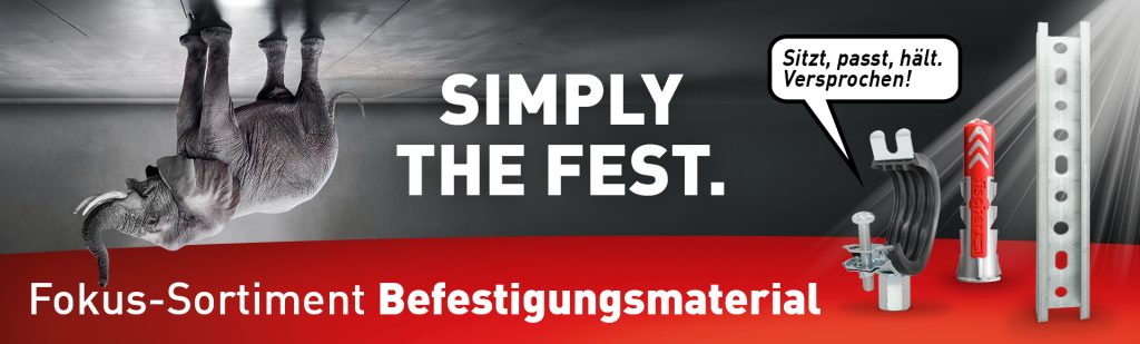 Auch alle, die gerade keine Elefanten an der Decke montieren, haben das beste Befestigungsmaterial verdient. Unsere Schellen, Dübel, Schienen & Co sind sicher, einfach zu verbauen und sorgen für perfekte Ergebnisse bei jedem Einsatz.